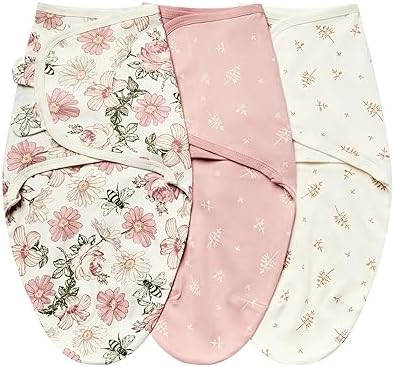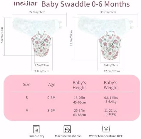insular Baby Swaddle Wrap, Swaddle Blanket for Newborn and Infant, Adjustable Velcro Swaddling Set for Boy and Girl, Soft Cotton Baby Sleep Sack 3 Pack, Floral, Small(0-3 Month)