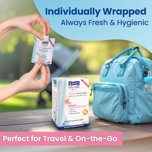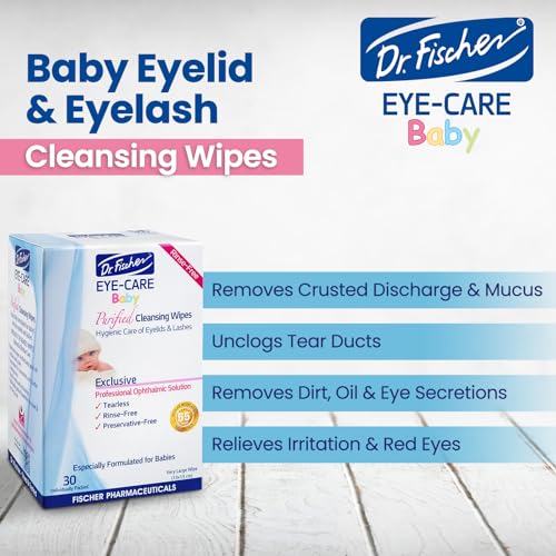 Purified, Non Irritating, Tear Free, Hypoallergenic & Sensitive Approved Baby Eyelid Wipes by Dr. Fischer – Pre-moistened, Rinse Free and Pediatrician Recommended - (30)