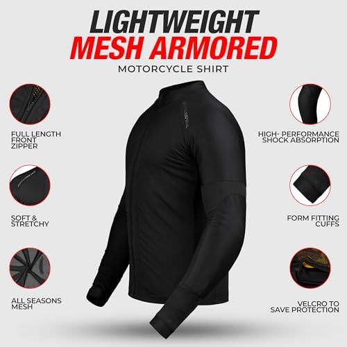 Sponsored Ad - Motorcycle Mesh Shirt for Men with CE Certified Protective Padded Armors | All Season Motorcycle Riding Shirt