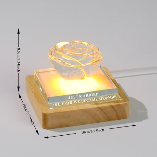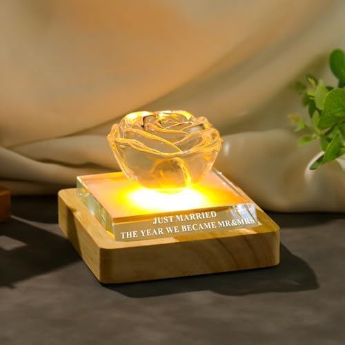 Sponsored Ad - Wedding Gifts for Couples-Mr&Mrs, Crystal Rose with Led Stand Decoration Memorial, Best Bride & Groom Engagement Souvenir Gifts Ideas (3.93 x 3.93 Inch