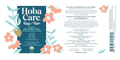 HobaCare Organic Jojoba Baby Oil with Pump – 100% Pure Natural Unrefined Unscented Cold Pressed Jojoba Oil for Baby Hair, Infant Skin, Body Care (4.22 oz)