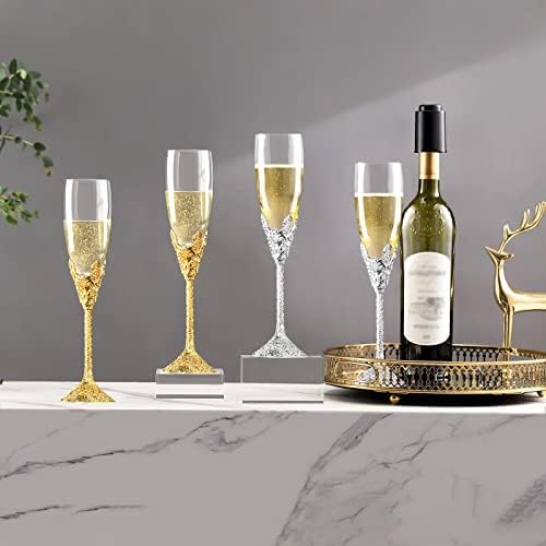 Sponsored Ad - Champagne Flutes - Set of 2 Champagne Glasses,Toasting Flute Pair,Crystal Glasses&Metal Base, Wedding Anniversary, Party Birthday Banquets,Gifts for Bride and Groom 6 oz-Silver