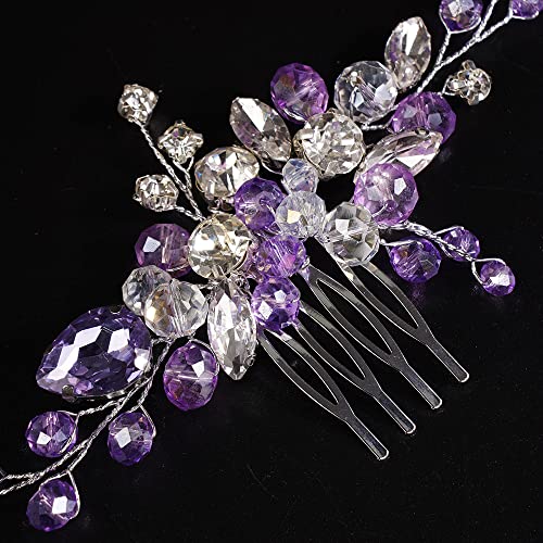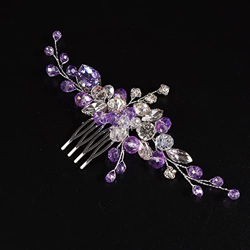JWICOS Crystal Bride Wedding Hair Comb Rhinestone Bridal Hair Clip Glitter Wedding Hair Accessories for Women and Girls (Purple)