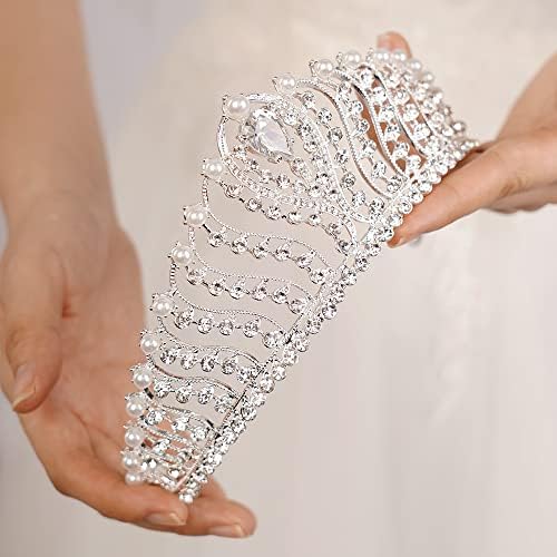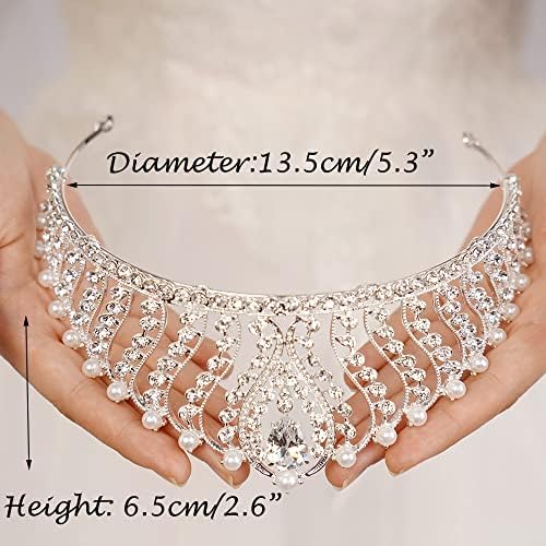 JWICOS Silver Pearl Crown for Women Queen Crown and Tiara for Women Crystal Rhinestone Princess Tiaras Crowns Wedding Hair Accessories for Bride Birthday Party Prom