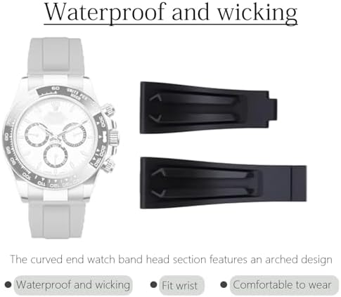 20mm Rubber Watch Band for Rolex Submariner, Daytona, Ghost, Yachtmaster, & More. Waterproof with a Classic Rolex-Style Deployment Clasp-Black