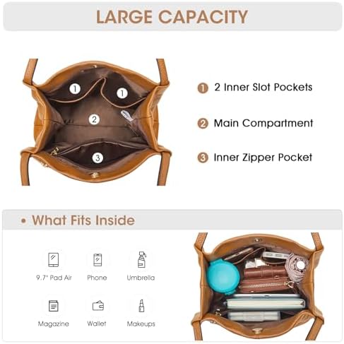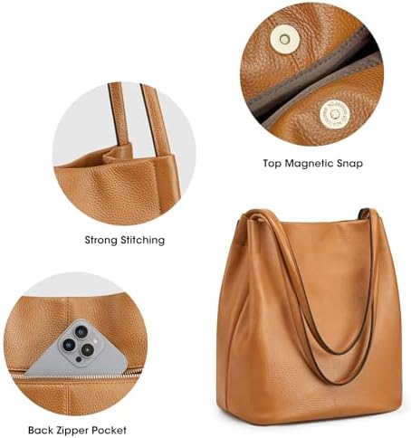 Sponsored Ad - Women Soft Genuine Leather Totes Shoulder Bag Purses and Handbags with Top Magnetic Snap Closure