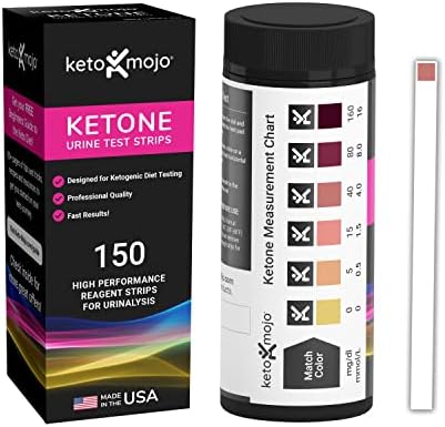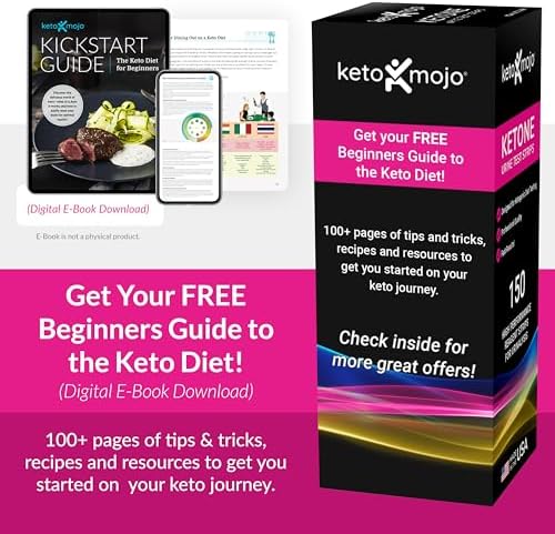 Keto-Mojo Ketone Test Strips 150ct for Ketogenic Diet - Urine Testing for Ketosis Monitoring - Extra Long with Free Keto Guide eBook & App