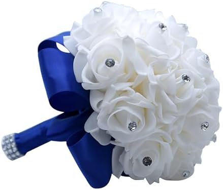 Sponsored Ad - Wedding Bouquets - Crystal Diamond Silk Roses, Bride & Bridesmaid Hand Roses for Churches & Parties (Blue)
