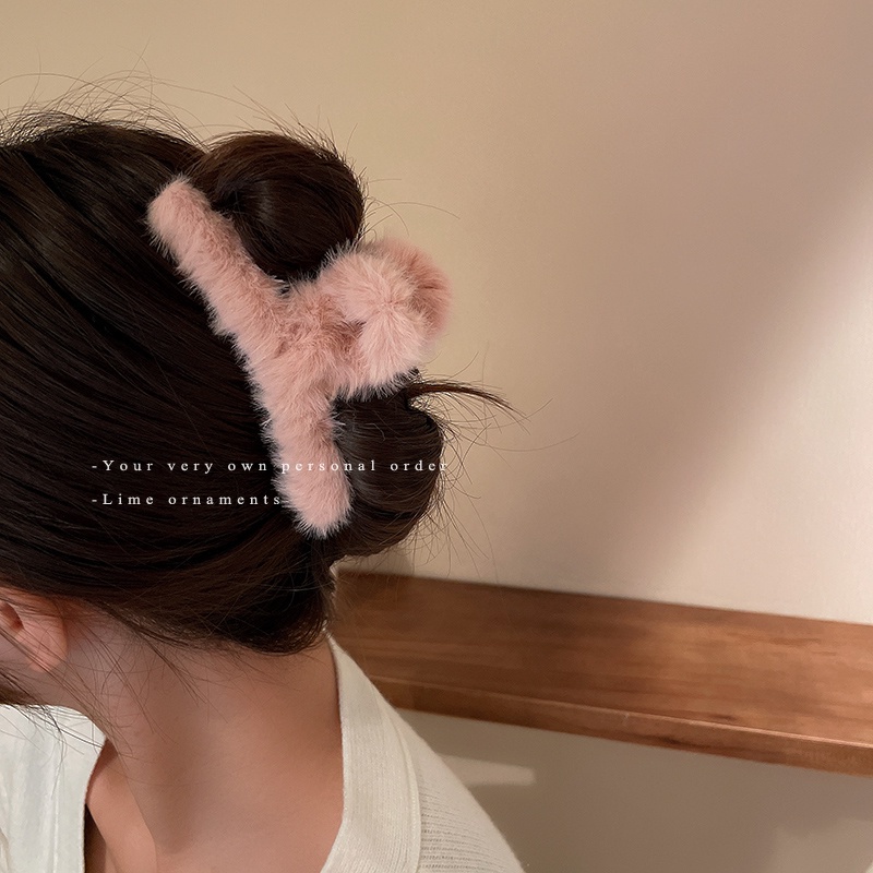 Korean Autumn Winter Plush Hair Clip Simple Solid Color Back Head Plate Hair Clip Female Sweet Girl Shark Clip Hair Accessories
