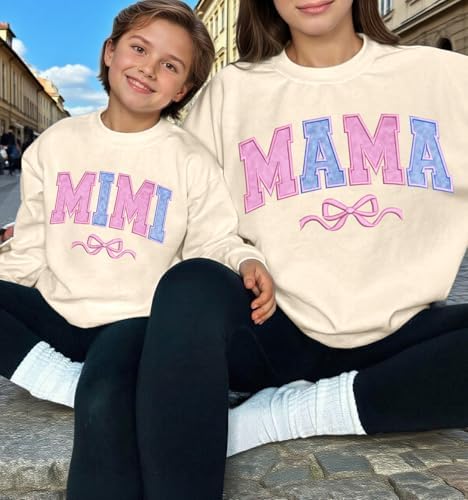 Mommy and Me Matching Outfits Crewneck Long Sleeve Pullover Tops Cute Family Matching Shirt
