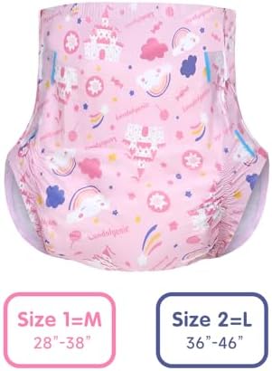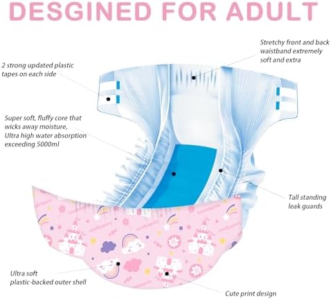 Adult Diapers Pink Printed Diaper Incontinence Underwear Large Overnight Diapers with Tabs 10 Pieces (Medium 28"-38")