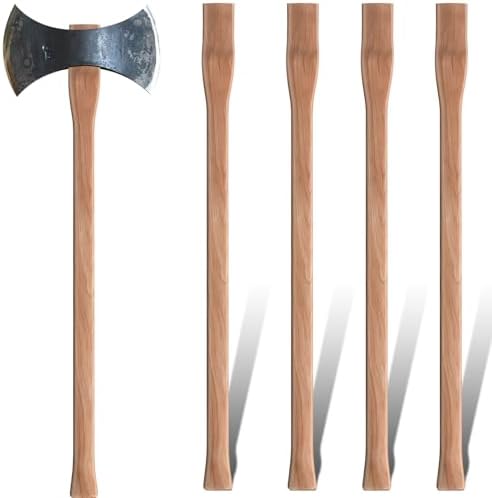 Lasnten 4 Pcs 36 Inches Double Bit Axe Handle Replacement Hickory Wood Axe Maul Handle, Complete Set with Wooden and Iron Wedges for Double Bit Hatchet