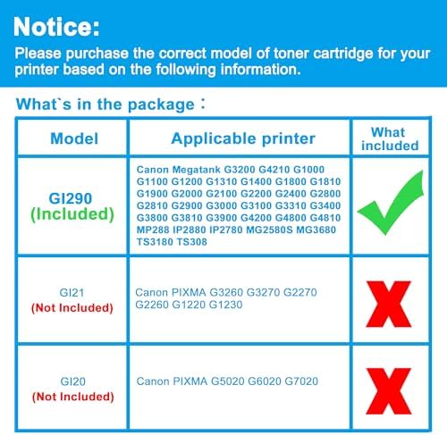 LCL GI-290 Ink bottles Replacement for Canon GI 290 GI290 290 Ink Refill Bottles Compatible with Canon Megatank G3200 G4210 G1000 G1100 G1200 G1310 G1400 G1800 G1810 G1900 G2000 G2100 G2200 (2K2C2M2Y)