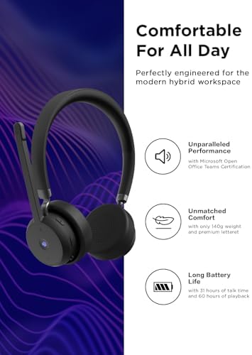 Wireless VoIP Headset Teams Certified, Noise-Canceling Mic, Bluetooth 5.3 Multipoint, USB-A Receiver, 31-Hour Talk & 60-Hour Playback, Lightweight Over-Ear Design, Replaceable Earcups