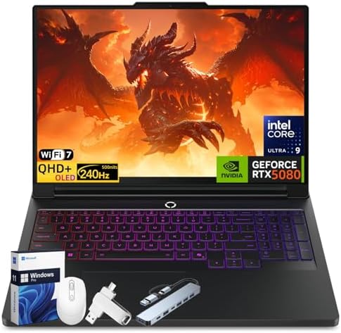 Legion Pro 7i 2025 Gaming Laptop, NVIDIA RTX 5080 16GB GDDR7, Intel Ultra 9 275HX, 16 inch 2560x1600 240Hz OLED, WiFi 7, BT 5.4, 64 GB DDR5, 4 TB SSD, Windows 11 Pro, Accessories