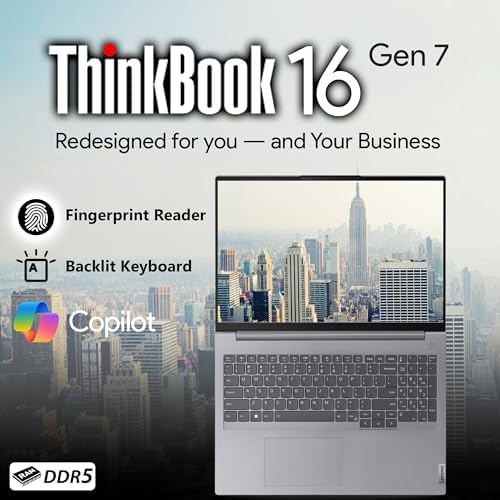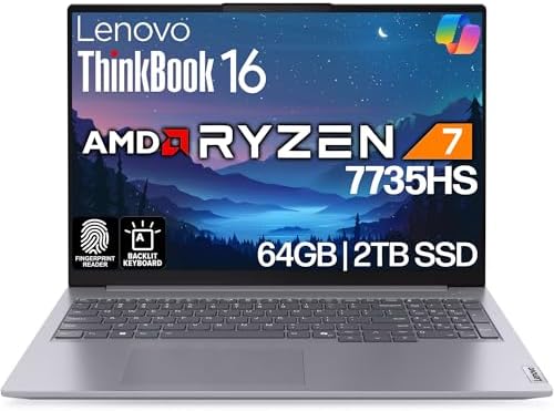 ThinkBook 16 G7 Business Laptop, 16” FHD+, AMD Ryzen 7 7735HS, 64GB DDR5, 2TB NVMe, WiFi 6E + BT, Backlit KB, Fingerprint Reader, HD Webcam, Win 11 Pro