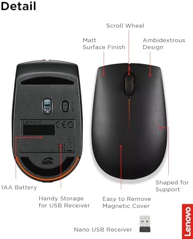 300 Wireless Mouse – Computer Mouse for PC, Laptop with Windows – Ambidextrous Design – 2.4 GHz Nano USB Receiver – 12 Month Battery Life