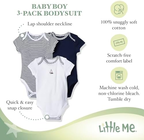 Little Me Clothes for Baby 3-Pack 100% Cotton Scratch Free Tag Bodysuits, Newborn to 9 Months