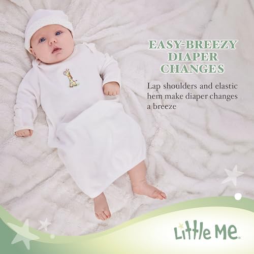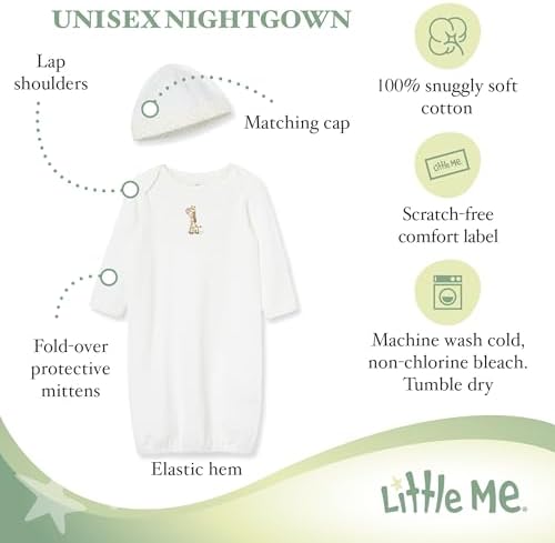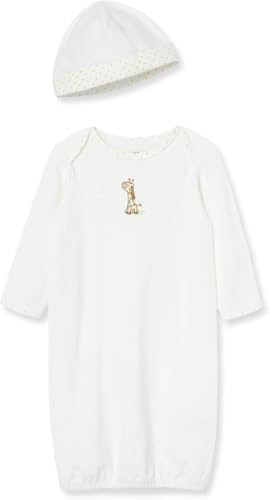 Little Me Clothes Baby Gender Neutral 2-Pc Nightgown and Cap Set 100% Cotton with Elastic Bottom, Baby Essentials,0-3 Months