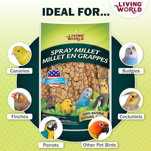 Living World - Millet Spray for Birds, 3.5 Oz – Premium Treat for Budgies, Canaries, Finches, Cockatiels and Other Pet Birds