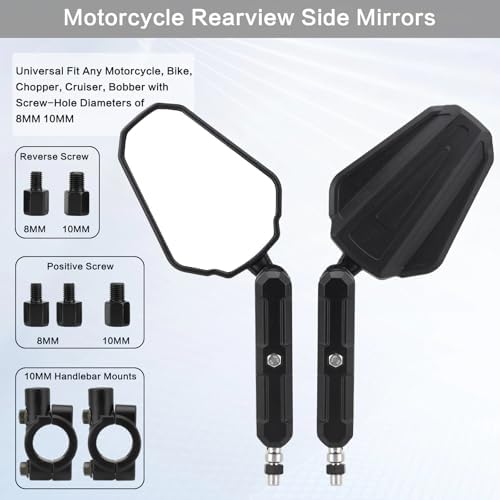 Sponsored Ad - Adventure Bike Mirrors - Universal Rear View Side Mirror with M8 M10 Bolt 7/8" Handlebar Mount Motorcycle Mirrors for ATV Scooter Dirt Bike KTM Honda Kawasaki KLR Yamaha Suzuki