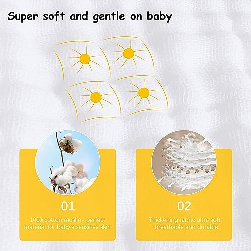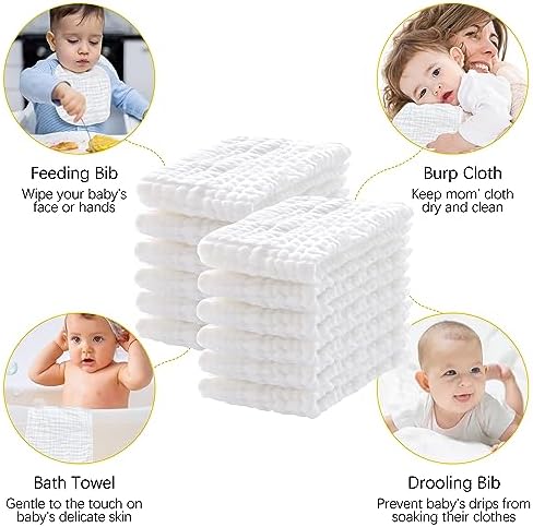 12 Pack Muslin Burp Cloths 100% Cotton Muslin Cloths Large 20''x10'' Extra Soft and Absorbent Baby Burping Cloth - White