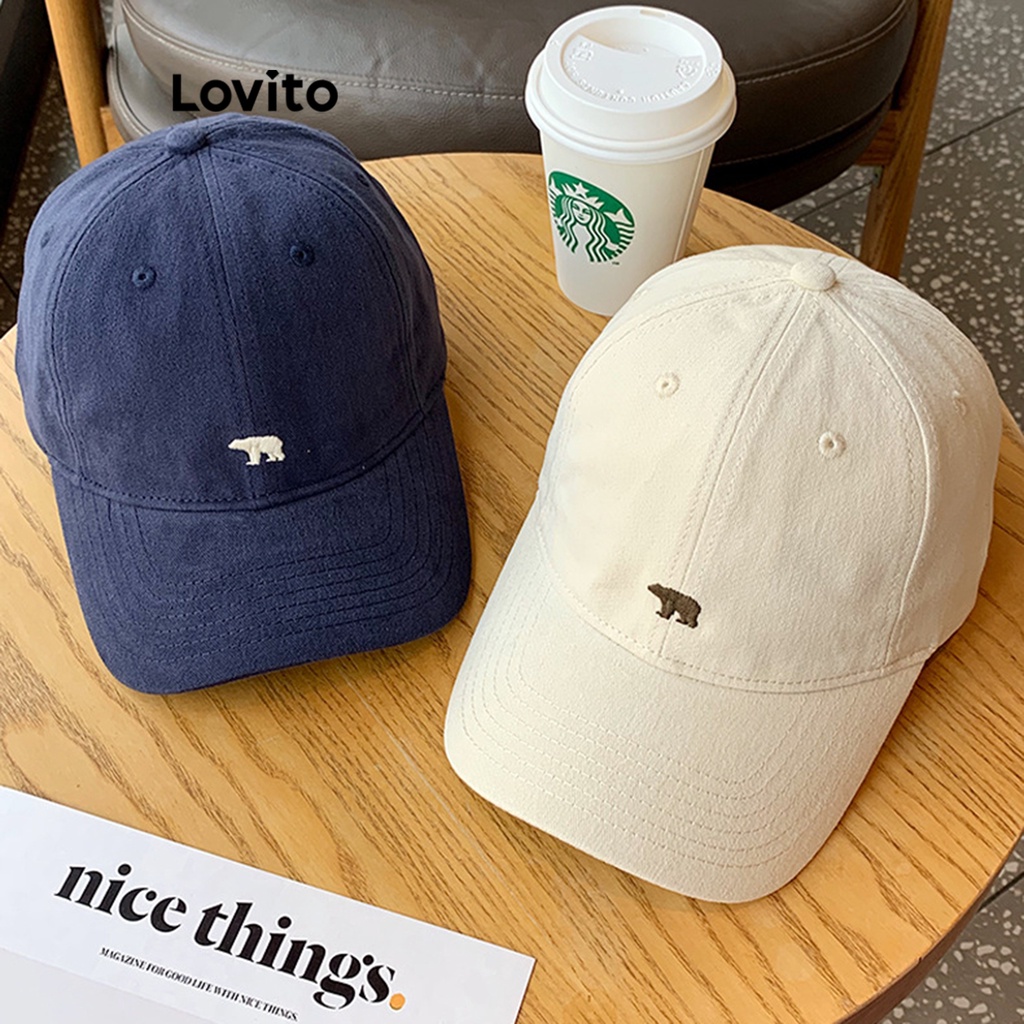 Lovito Sporty Plain Embroidery Pattern Cupola Bent Brim Polar Bear Hat for Women LFA08409 (Army Green/Khaki/Off White/Navy Blue)
