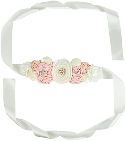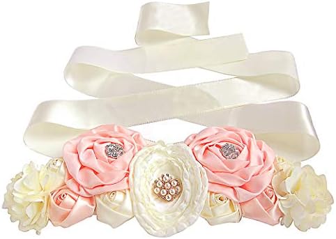 Floral Bridal Maternity Sash Belt – Satin Ribbon Belly Band for Wedding Pregnant Baby Shower Party Photoshoot
