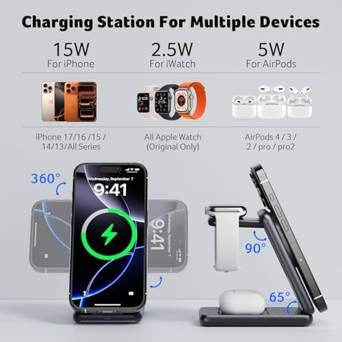 Sponsored Ad - Magnetic Wireless Charger,3 in 1 Wireless Charging Station,15W Fast MagSafe Charger for iPhone 17 16 15 14 13 12 Series-Apple Watch 10 9 8 7 6 5 4 3 2 SE and Ultra Series-Airpods 4 3 2