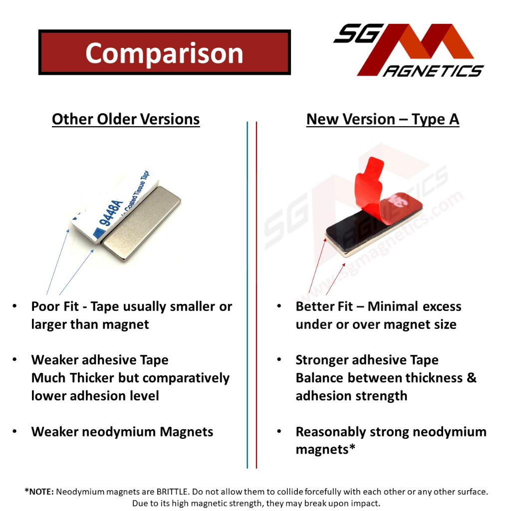 Performance:ok Quality:ok Suitability:ok Simple designed magnets that are strong enough to do their job. Seller is careful to wrap them up to prevent damage. The sticky side can peel off if remove from attached area.