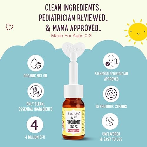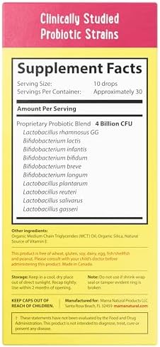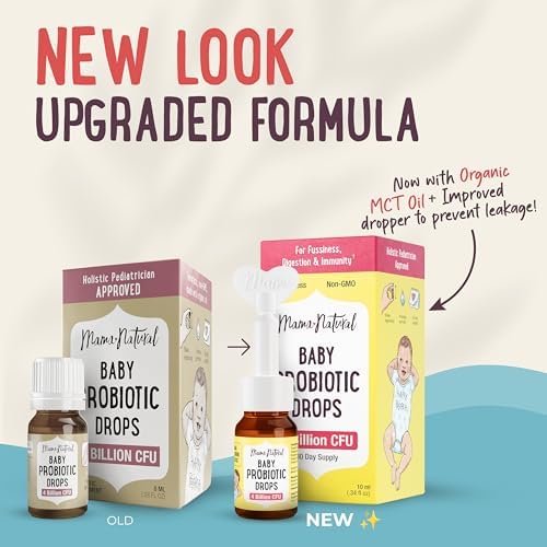 Mama Natural Baby Probiotic Drops | Pediatrician-Approved Infant Probiotic Colic Drops – Infant Gas, Constipation, Fussiness & Immune Support Supplement – 10 Strains & 4 Billion CFU with MCT Oil