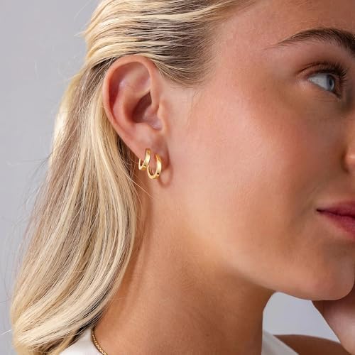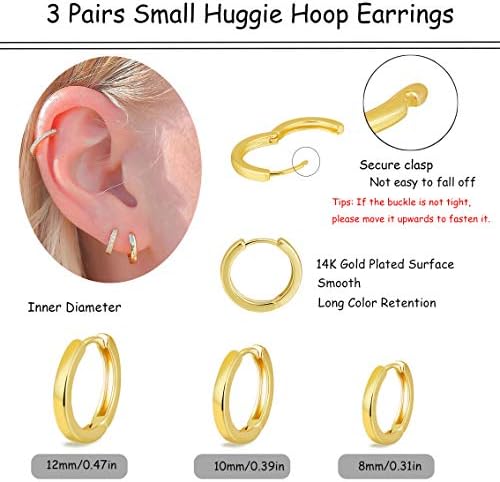 Sponsored Ad - micuco 3 Pairs Small Hoop Earrings Set for Women, 14K Gold Plated Huggie Hoop Earrings for Men, Tiny Cartilage Hypoallergenic Earring Set