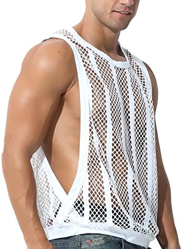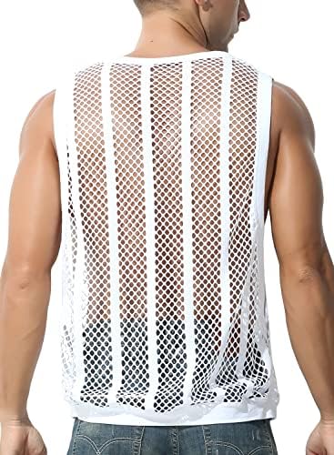 Men's Fishnet Mesh Tank Tops Sexy See Through Workout Vest Sleeveless Sheer Muscle Shirts