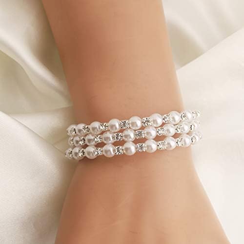 Sponsored Ad - MYOSPARK Multi Layers Pearl Rhinestone bracelet Cuff Wrap Bangle Wedding Jewelry Gift For Bridal Mother Bridesmaid