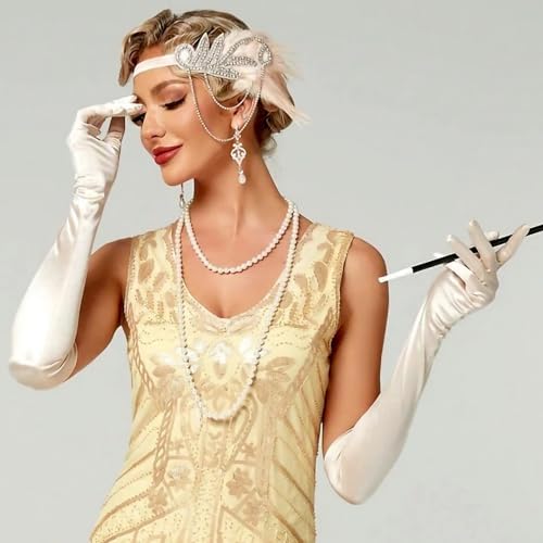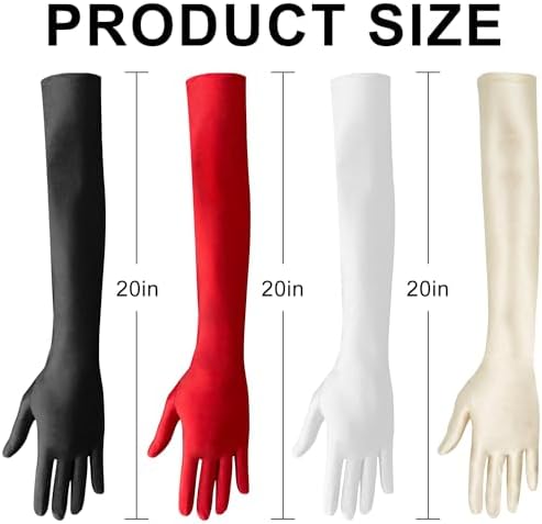 Nackiy Long Black Opera Gloves for Women, 1920s Satin Stretchy Elbow Length Party Gloves Costumes Bridal, 20inch