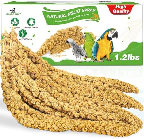 Millet for Birds 1.2LB, Natural Sun-Dried Spray Seed No Stems Only Edible Tops for Parakeet, Budgies, Finches, Cockatiels, Parrots, Lovebird, Hamster and Other Pets Treat
