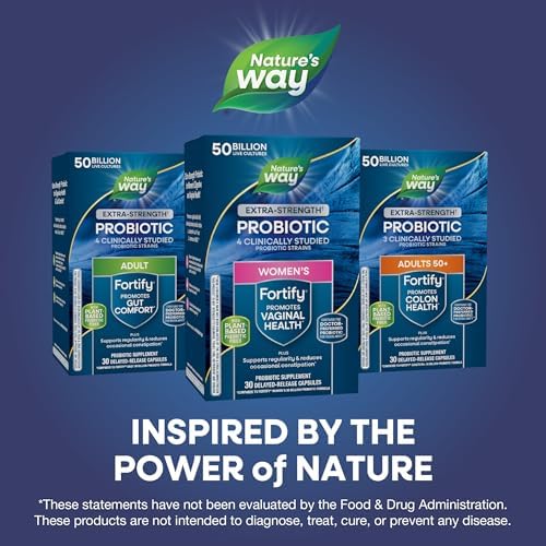 Nature’s Way Fortify Women’s 50 Billion Daily Probiotic Supplement, 10 Probiotic Strains, Digestive Health*, Immune Support*, Women’s Health*, Non-GMO, No Refrigeration Required, 30 Capsules