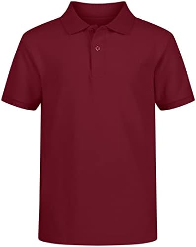 Boys' School Uniform Short Sleeve Polo Shirt, Button Closure, Comfortable & Soft Pique Fabric