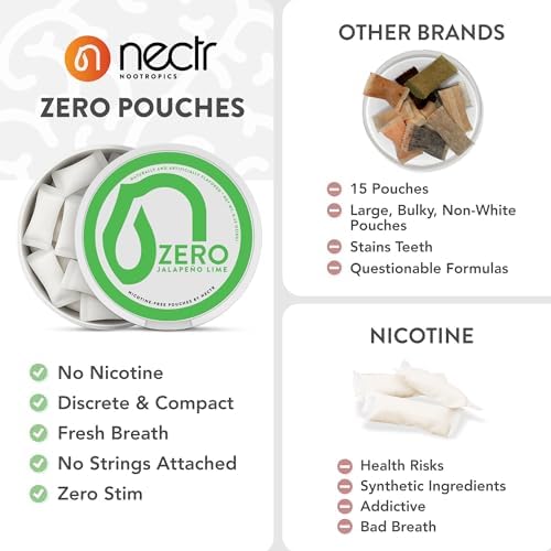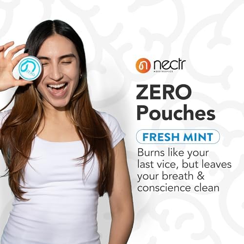 Nectr Energy Zero Pouches - No Caffeine, No Sugar, Zero Calories Mini Pouches for Oral Fixation and Stress Relief - 4 Pucks of 20 - Fresh Mint Flavor