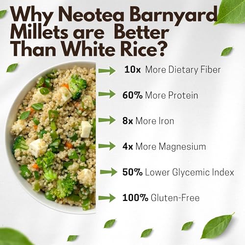 Neotea Barnyard Millet, 1kg/ 2.2 lbs | Unpolished | Kuthiraivali | Sanwa | Indian Millet | Whole grain | Gluten free | jhangora | Rich in Protein, Fiber, Vitamins | Non-GMO, Gluten Free Diet, Low GI |