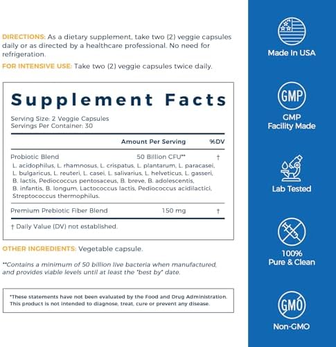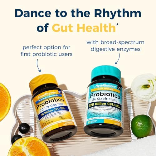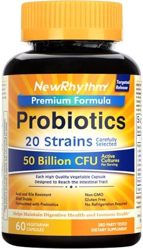 NewRhythm Probiotics 50 Billion CFU 20 Strains, 60 Veggie Capsules, Targeted Release Technology, Stomach Acid Resistant, No Need for Refrigeration, Non-GMO, Gluten Free
