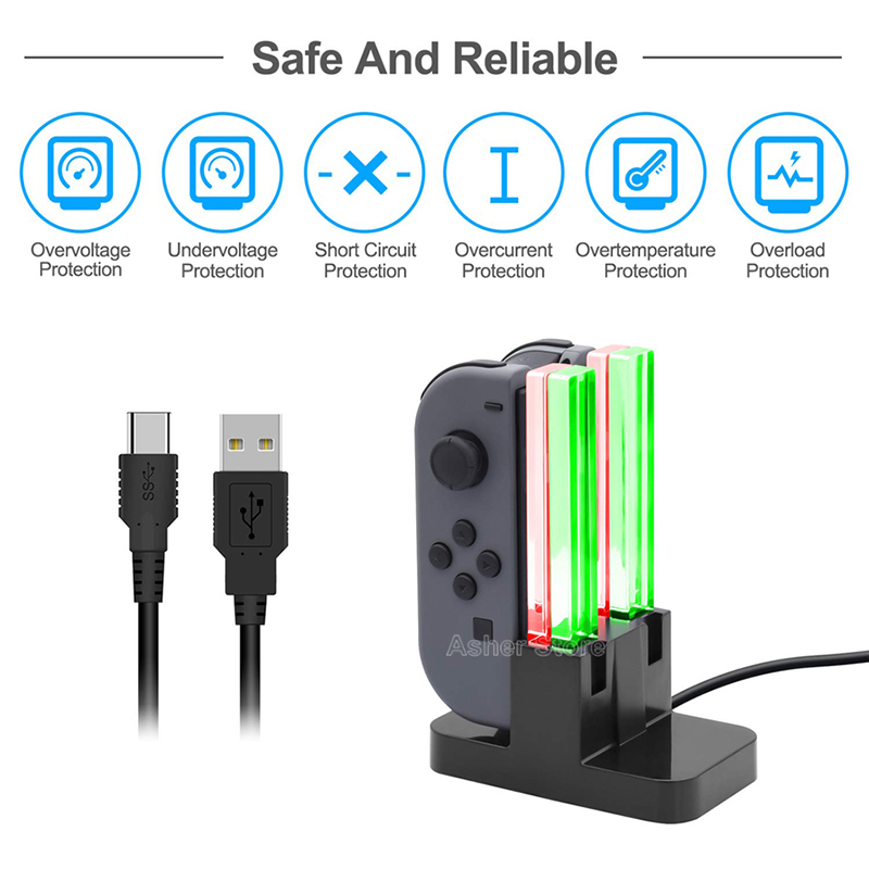 Value For Money:Great Best Feature(s):Charge 4 Joy-con controllers at same time Product Quality:Great Fast delivery and very useful device. Just snap the controllers in. Easy to tell when its fully charge (green color) or still charging (red color). Charging time from low battery to full charge is fast. Highly recommend??