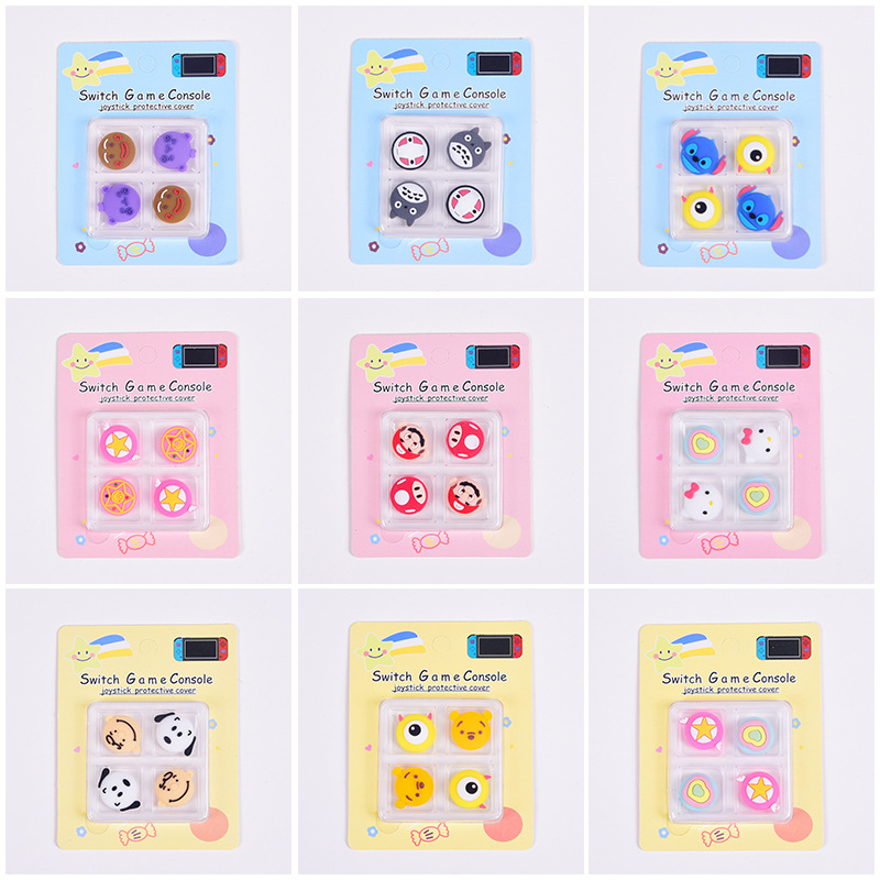 Nintendo Switch Accessories 4 PCS Silicone Cartoons Style Thumb Grip Caps for Nintendo Switch & Switch Lite Joycon