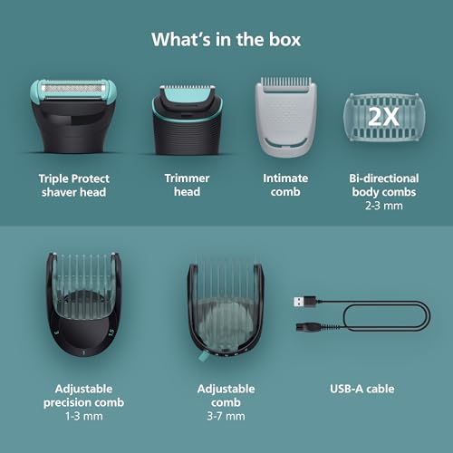 Philips Norelco Body Groomer 5000 Series, Intimate Hair Trimmer & Shaver for Men with Dual 100% Showerproof Full Body Shave & Trim Heads and Two Bi-Directional Body Hair Combs, BG5495/50