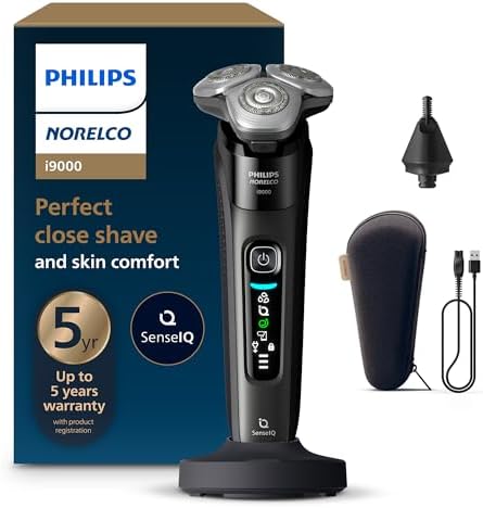 Sponsored Ad - Philips Norelco Shaver i9000, Wet & Dry Electric Shaver, Ink Black, SenseIQ Technology, Triple Lift & Cut System, 360 Rotating Dual SteelPrecision Precision Blades, Nose Trimmer, Model