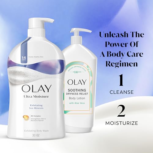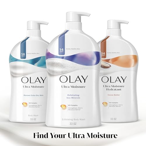 Body Wash for Women, Ultra Moisture, Exfoliating Formula, 24hr Moisturizing, Hydrating & Replenshing, B3 Vitamin Complex, For All Skin Types, Sea Minerals Scent, 33 fl oz (Pack of 4)