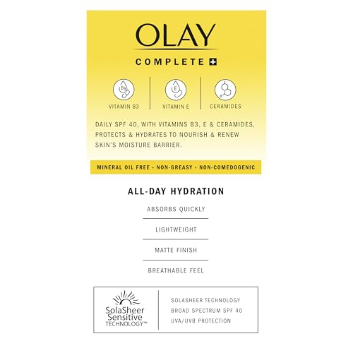 Complete+ Face Moisturizer with Sunscreen SPF 40, For Sensitive Skin, Broad Spectrum Sun Protection, Fragrence-Free - No White Cast on All Tones, Nourishes Moisture Barrier - Ceramides, 6 Oz