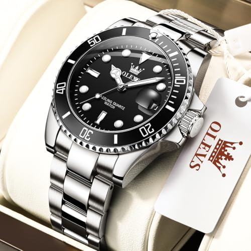 Watches for Men Classic with Date Business Dress Luxury Big Face Green/Black/Blue Waterproof Luminous Mens Wristwatch Analog Two Tone Stainless Steel Male Watch