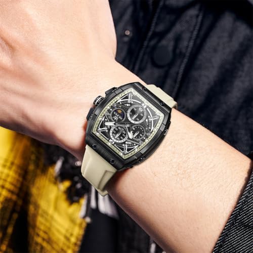 Sponsored Ad - Men Watches Business Dress Chronograph Big Square Quartz Analog Male Watch Silicone Strap Waterproof Date Gift Mens Wrsit Watch Silver