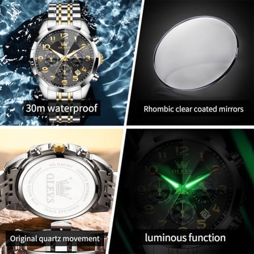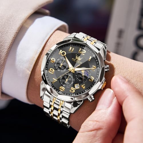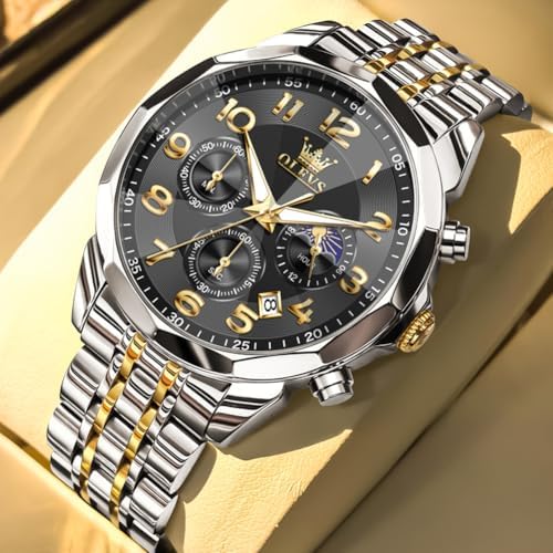 Sponsored Ad - Mens Watches Large Face Watch for Men Casual Stainless Steel Diamond Analog Quartz Waterproof Date Dress Men's Wrist Watch…